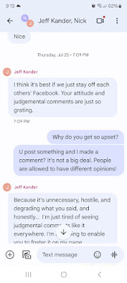 Glad I screen shotted this along time ago in July to show Jeff what he said to me since he was getting on my Facebook telling things!